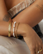 Angelic and ready to be stacked, the Lucia Bracelet is a pearl piece like no other featuring unique freshwater pearls and golden beads! Gift Lucia with its matching necklace for the ultimate dreamy combo.